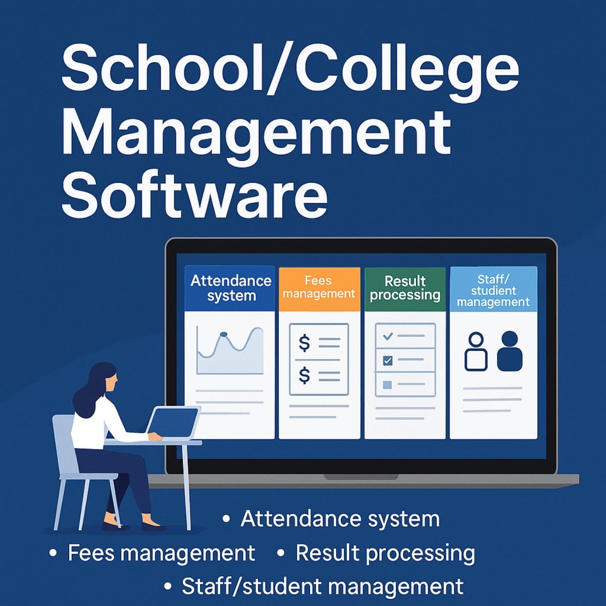 A complete educational management system that automates school/college operations, including attendance, fee collection, timetable scheduling, exams, results, ID cards, and parent communication.